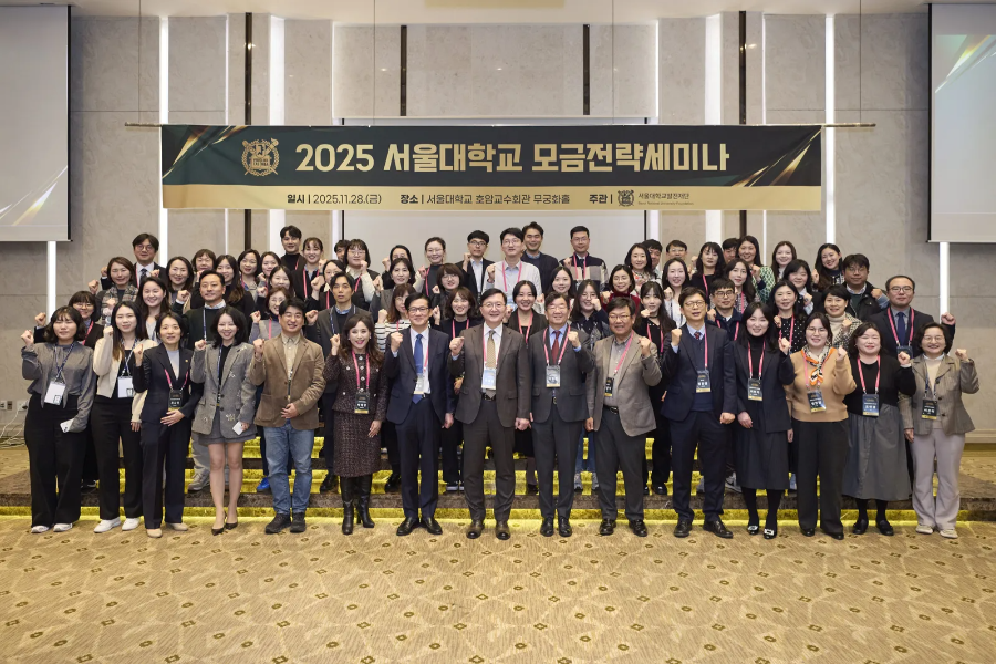 서울대학교발전재단은 11월 28일(금) 관악캠퍼스 호암교수회관에서 ‘2025 서울대학교 모금전략세미나’를 성대히 개최하며, 향후 대학 발전을 이끌 모금 전략과 협력 기반을 새롭게 강화하였다. 이번 행사에는 유홍림 총장, 정종호 서울대발전재단 부이사장, 이준환 서울대발전재단 상임이사, 각 단과대학 학장 및 보직교수, 서울·경기·인천지역 대학 모금 담당자, 교내 단과대학(원) 및 기관 모금 담당 직원 등 80여 명이 참석해 뜨거운 관심 속에 진행되었다.